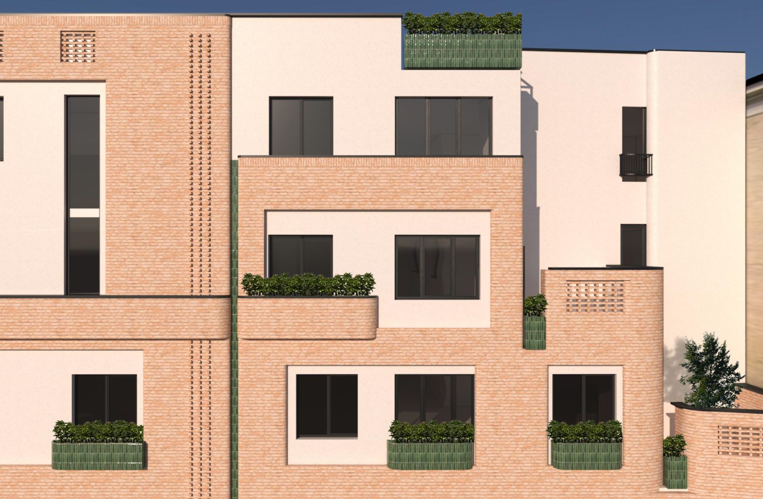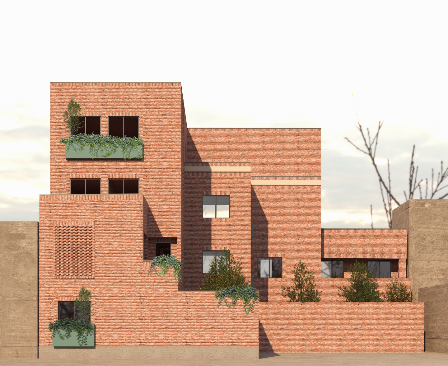 به منظور حفظ هویت تاریخی و فرهنگی منطقه، نمای ساختمان‌ها با آجر سنتی طراحی شده که علاوه بر زیبایی بصری، یادآور معماری اصیل تهران قدیم است. ترکیب این طراحی سنتی با ساختاری نوین و مقاوم، چهره‌ای تازه و در عین حال آشنا به بافت محله بخشیده است.